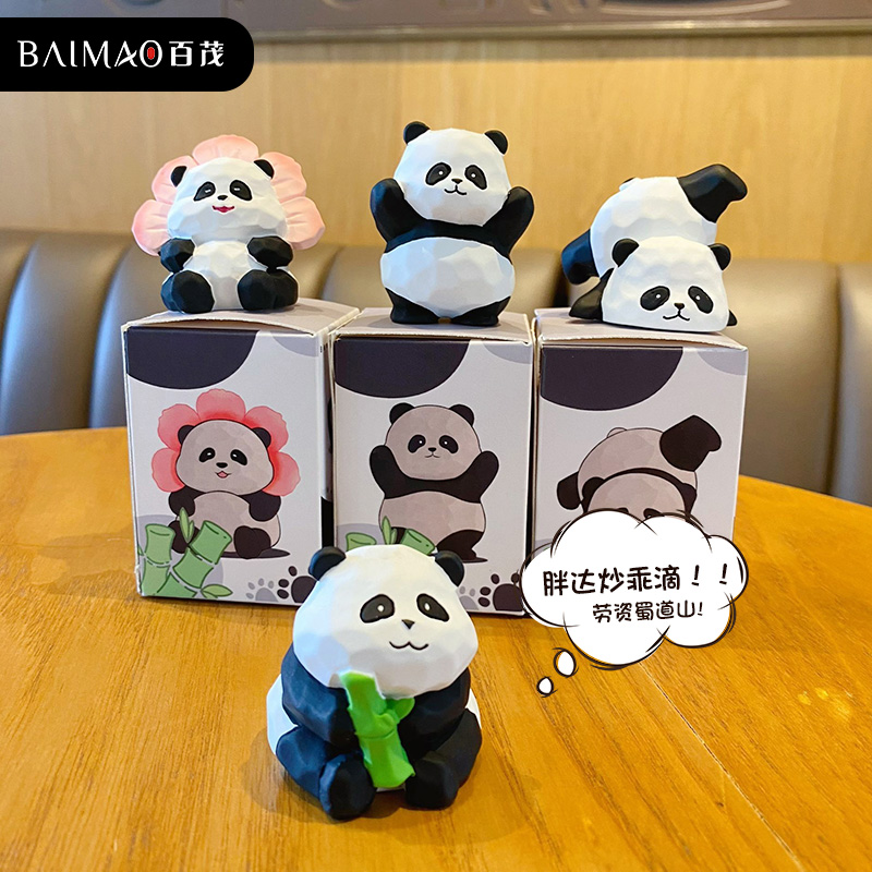 原创木雕风四川熊猫卧倒2025办公室桌面小摆件家居装饰品汽车用品