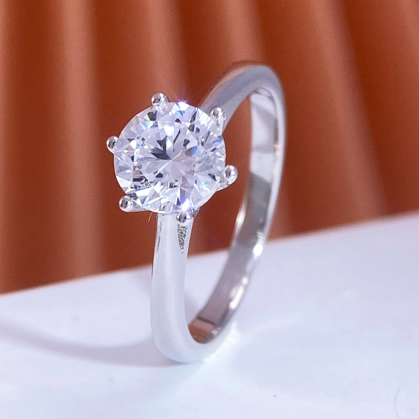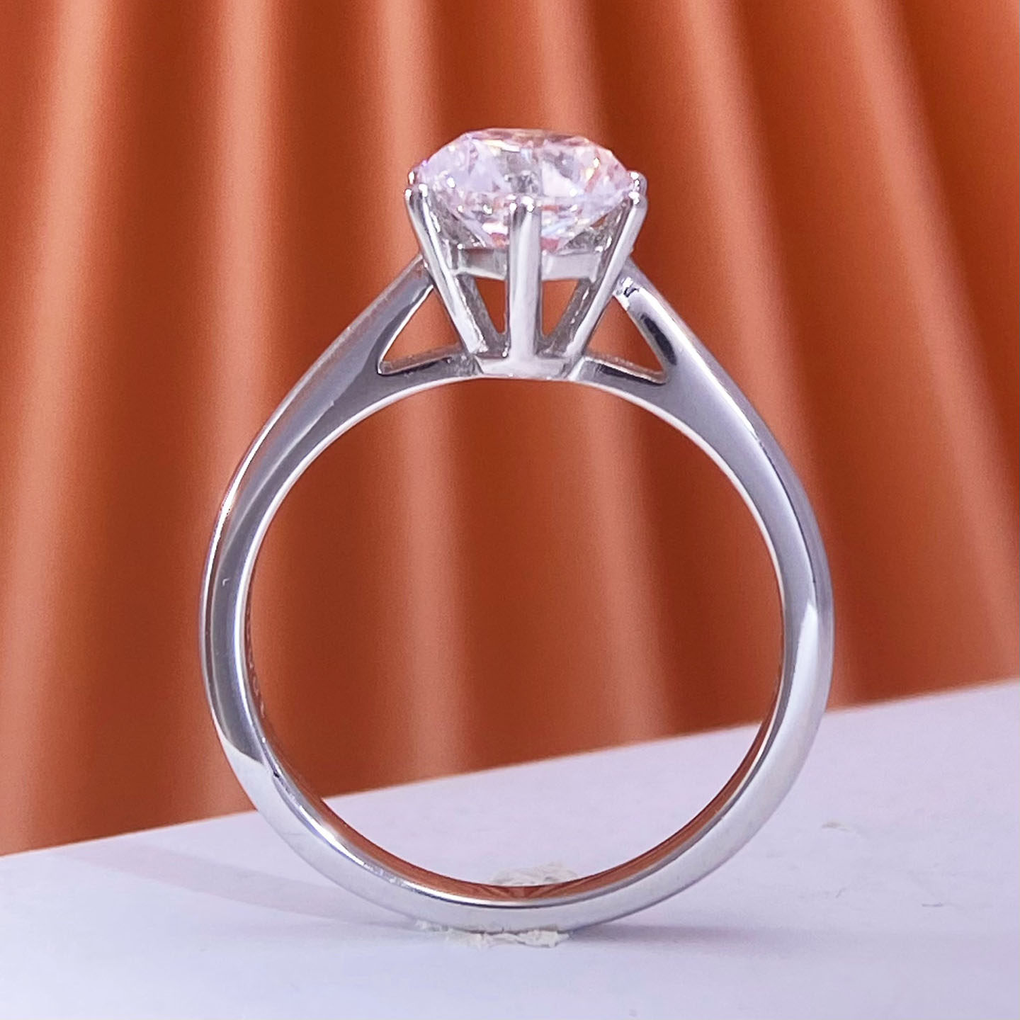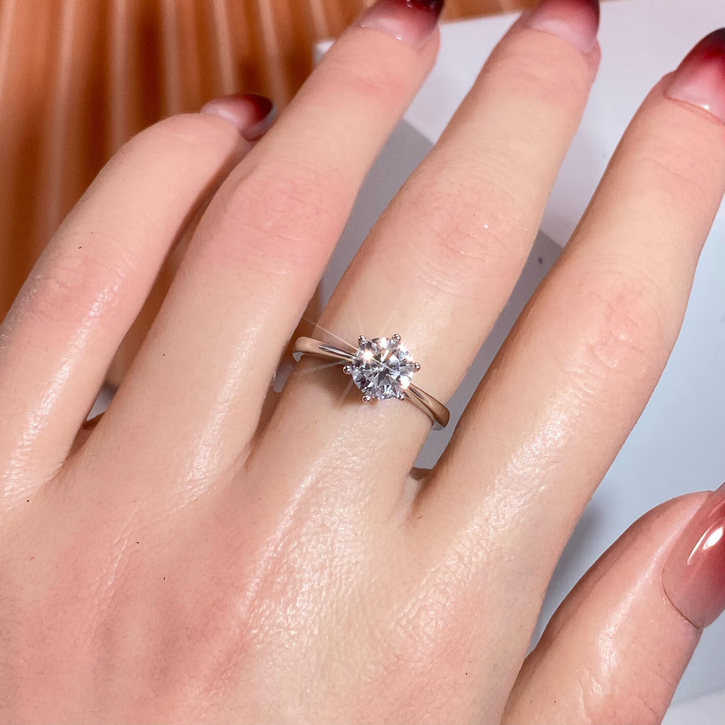 周家六爪莫桑钻闭口戒指空托S925纯银戒托镶嵌50分1克拉2克拉日韩