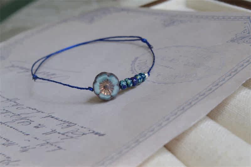 「一朵小兰花」原创仙气复古可爱琉璃小花超细绳手链闺蜜手绳女