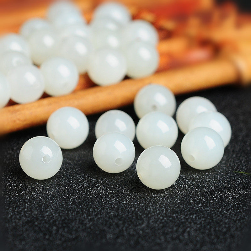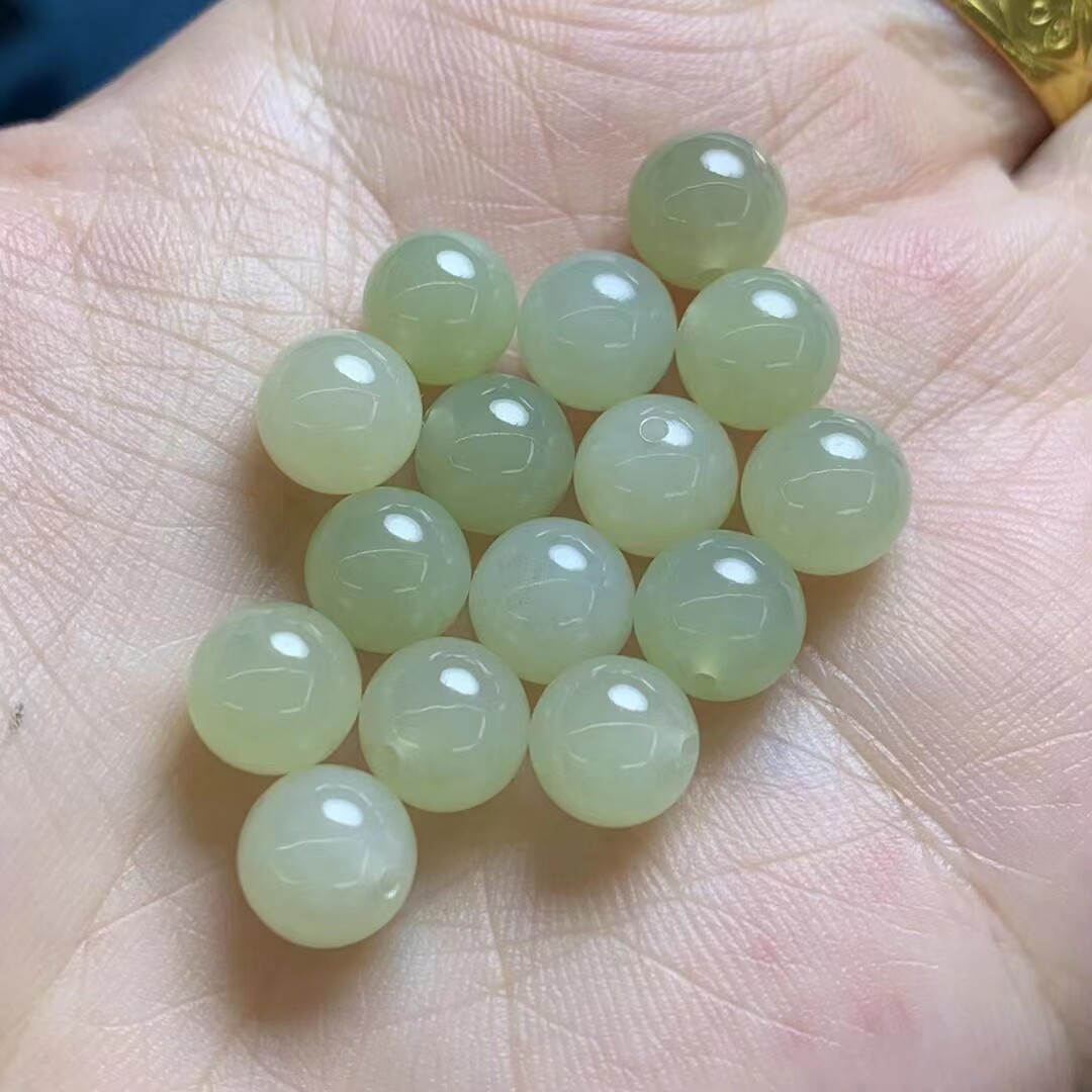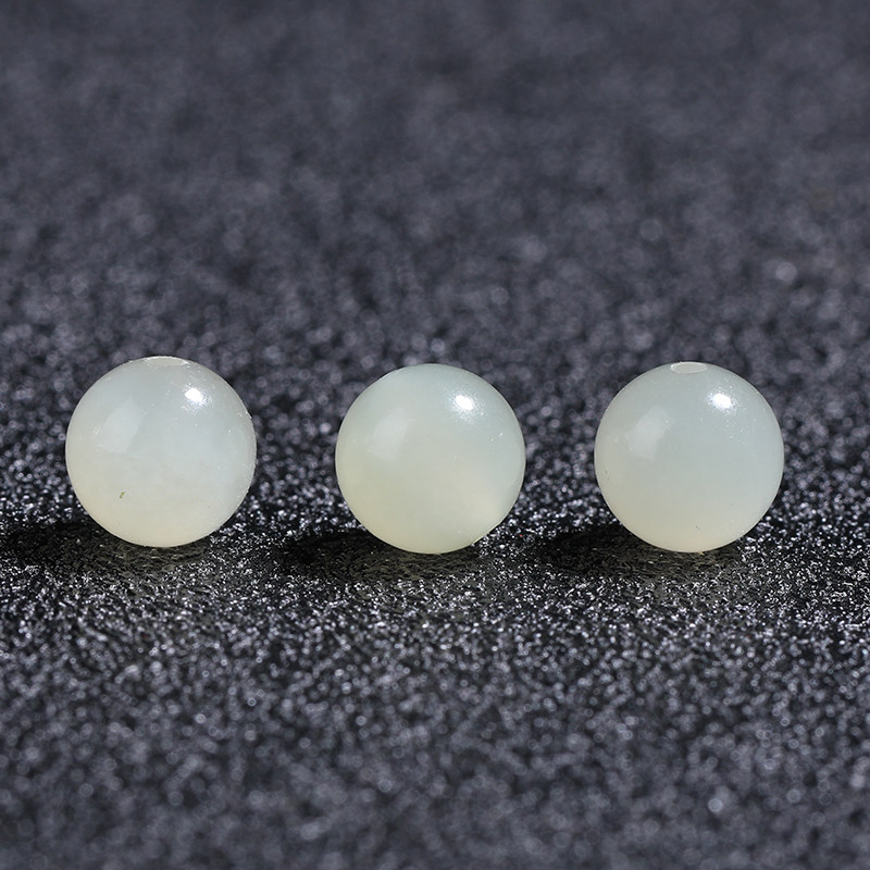 和田玉青白玉浅晴水散珠单珠圆珠天然玉石顶珠手链手串白晴水配珠