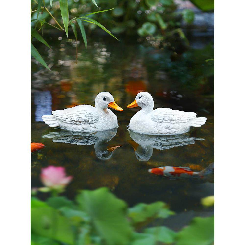 户外庭院鱼池假山喷泉鱼缸造景浮水鸭子摆件天鹅水池塘流水装饰品