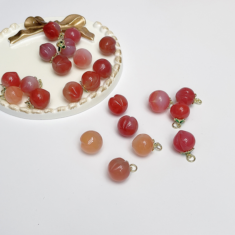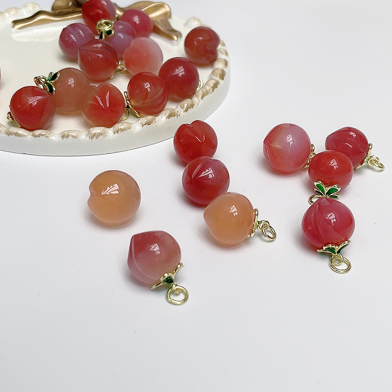 天然玛瑙水蜜桃子吊坠扣滴蜡绿叶 手工diy手链项链装饰品配件材料