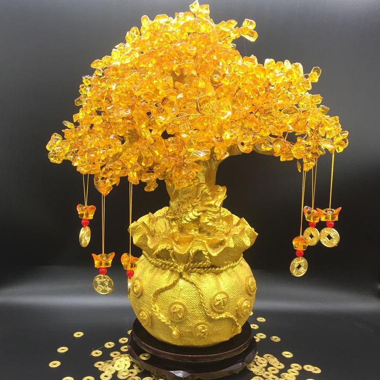 水晶招财树摆件 客厅酒柜发财树小装饰品家居创意工艺品摇钱树