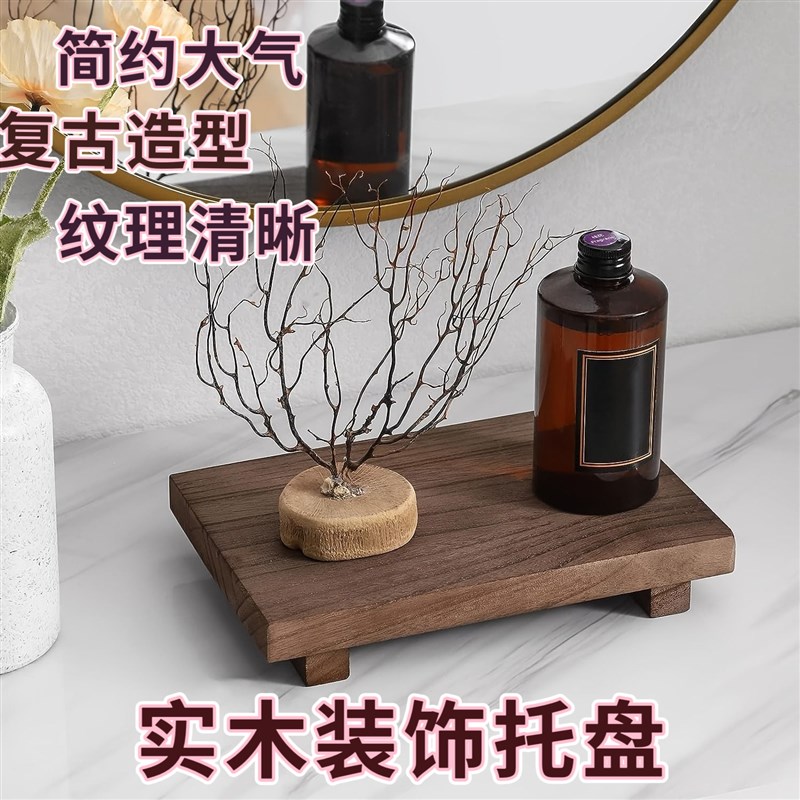 木质装饰托盘黑胡桃色拖底座实木摆件长方形托架家居展示台桌面