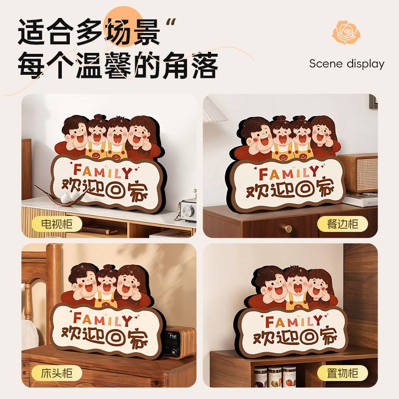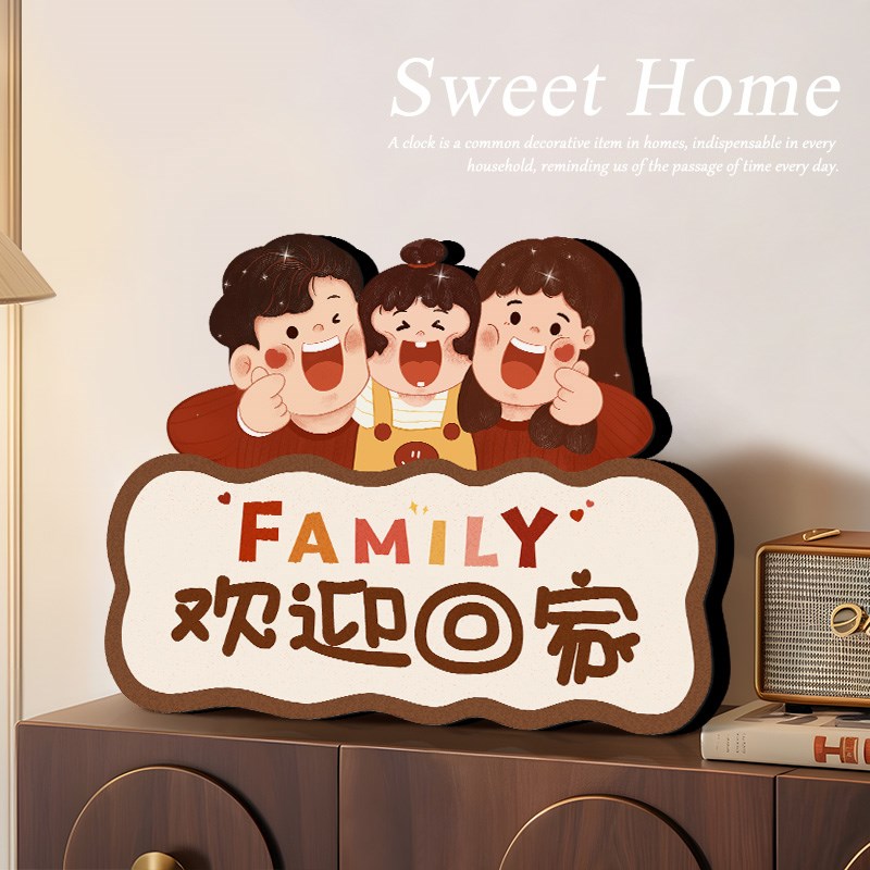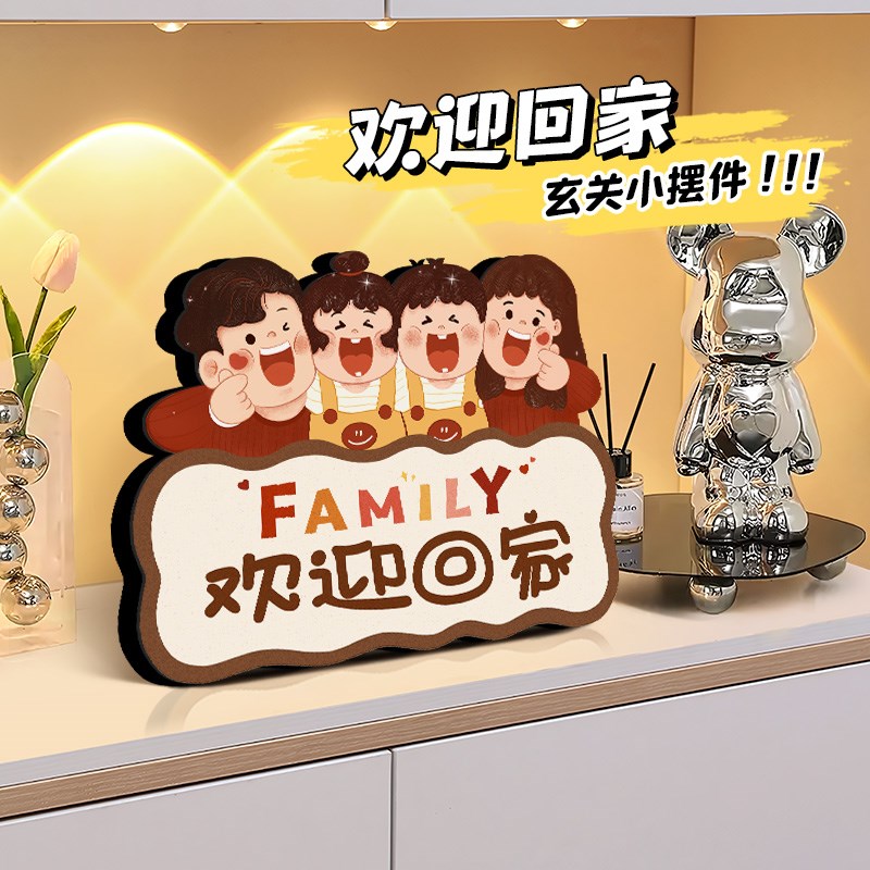 欢迎回家一家三口摆件入户门玄关装饰客厅电视柜家居饰品新居礼物