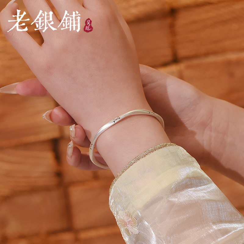 吴越老银铺足银手镯999足银俏喵手镯时尚简约纯银手镯百搭开口