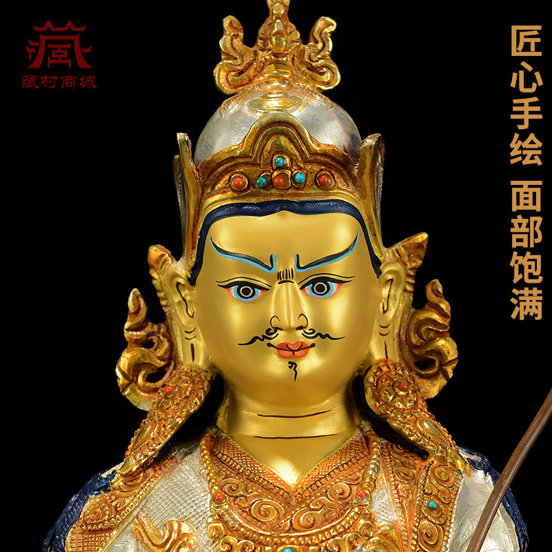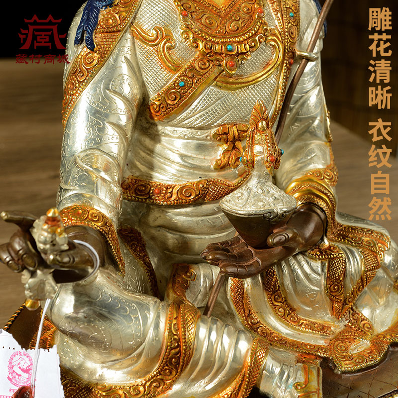 藏村尼泊尔进口《莲花生大士》室内家用鎏金鎏银《莲花生大师》