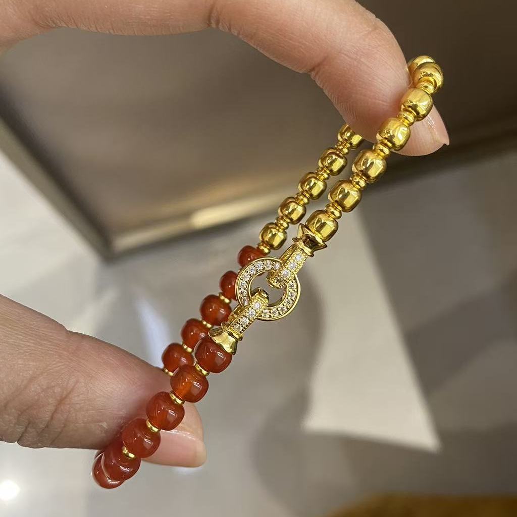 天然红玛瑙手链直切手串天然玉髓手串高档送闺蜜女友原创设计手链