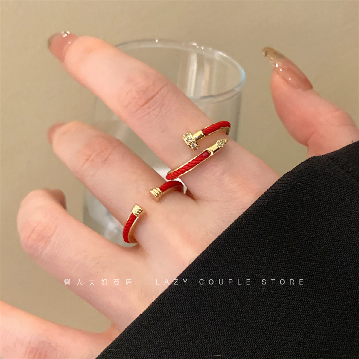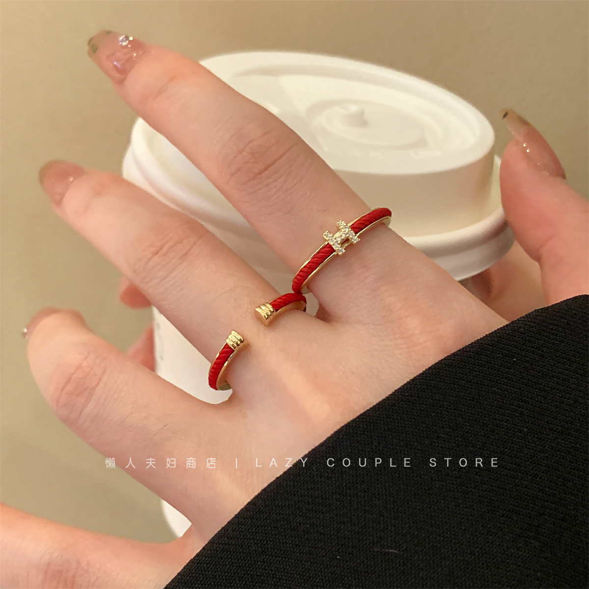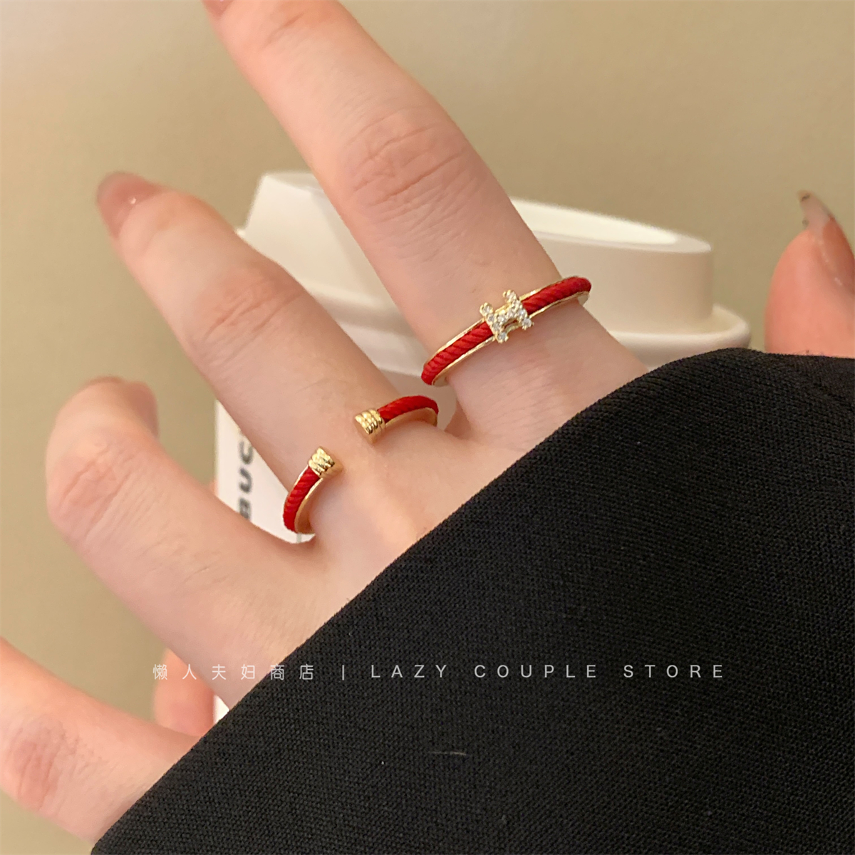 高级感编织红绳开口戒指女小众设计简约时尚轻奢手饰2025年新款潮