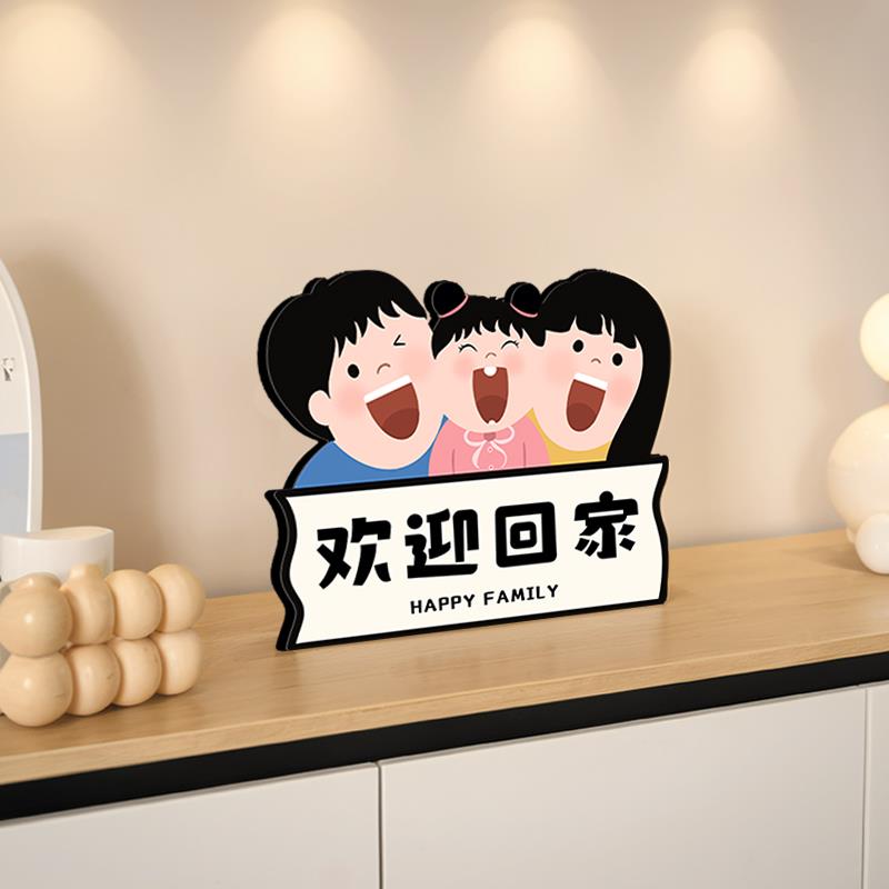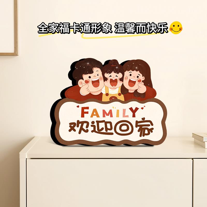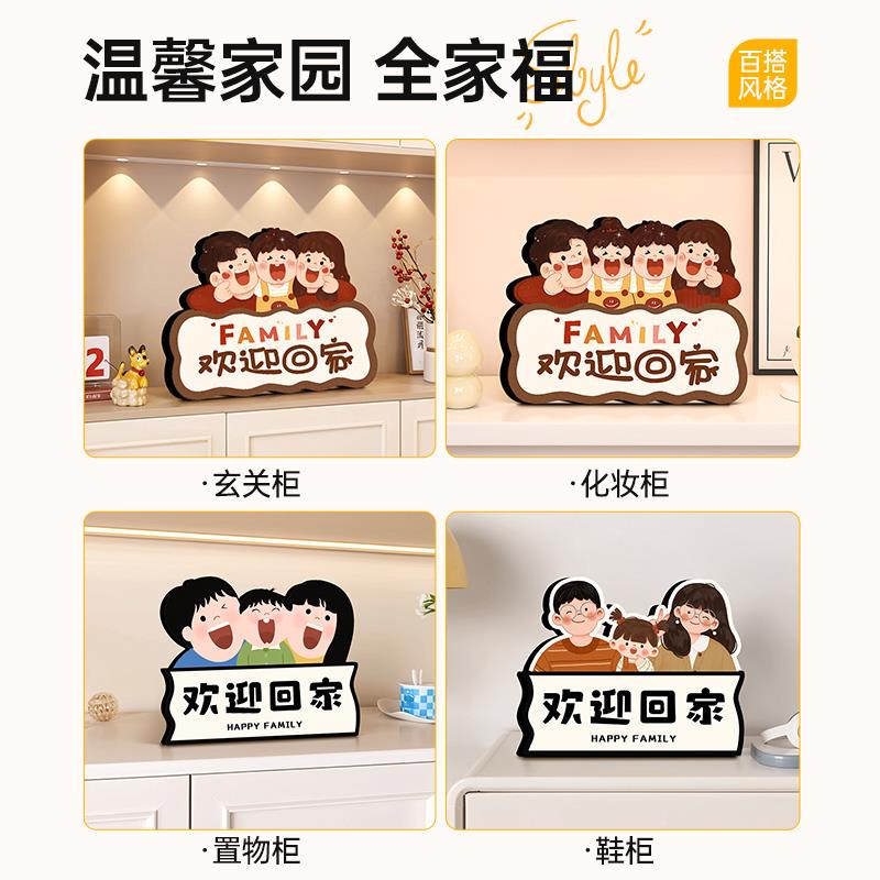 欢迎回家一家三口四口卡通创意摆件入户门玄关鞋柜电视柜装饰摆台