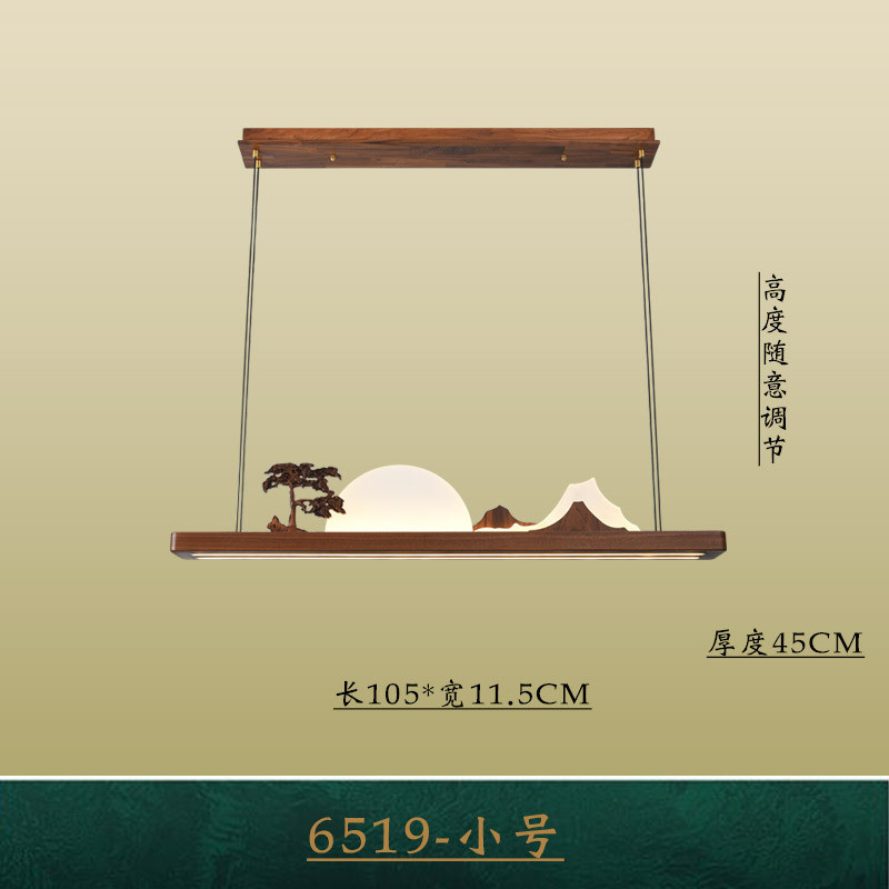 新中式茶室吊灯吧台黑胡桃实木中国风禅意长条茶桌北美书房餐厅灯