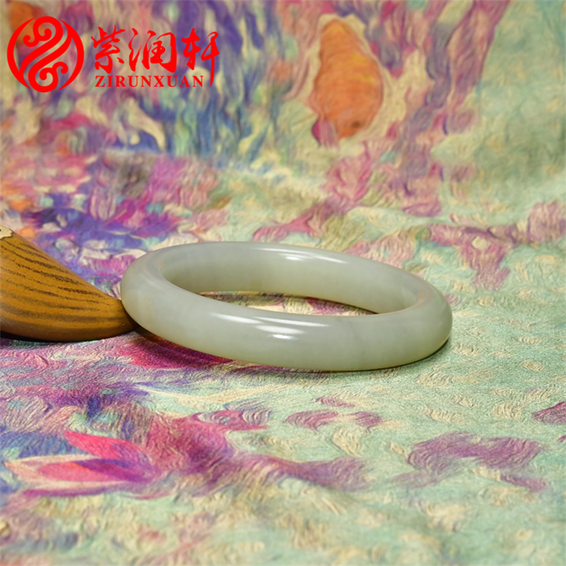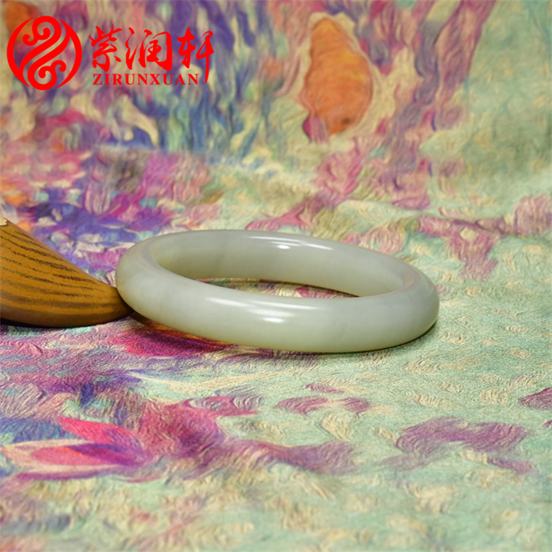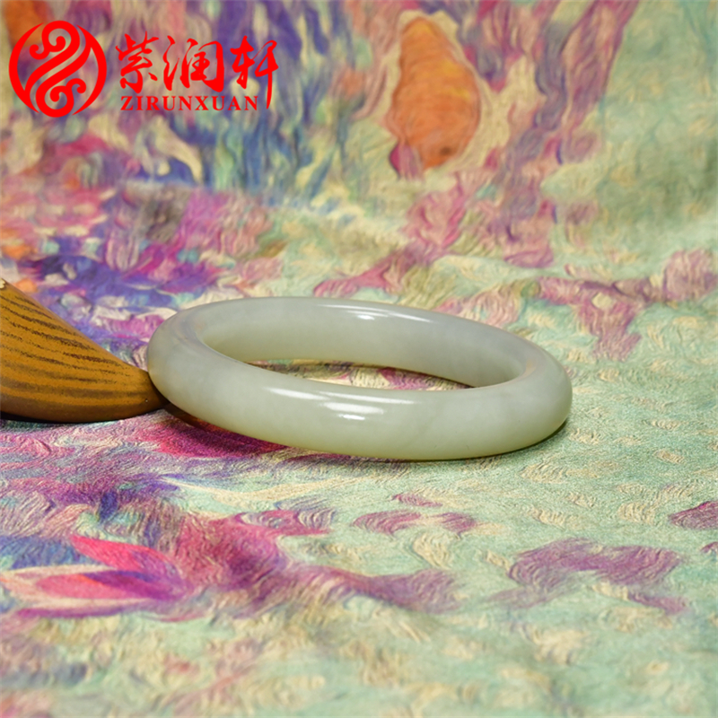 紫润轩新疆和田玉高青白玉籽料手镯闪青花正装泥鳅背59 5MM收藏级
