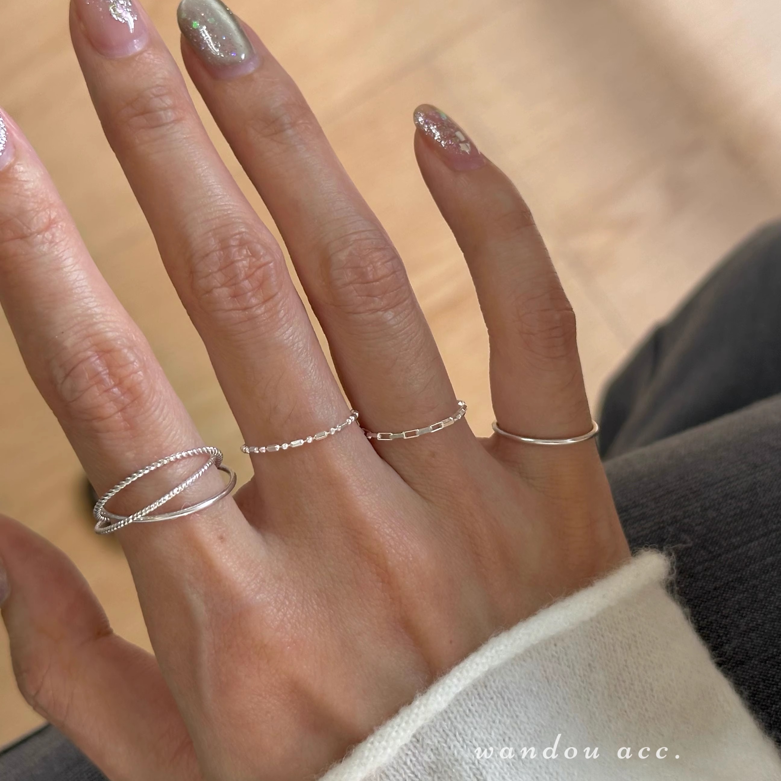 925纯银叠戴软链条戒指女细款精致高级感轻奢气质指环2024新款爆