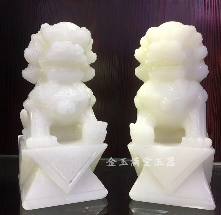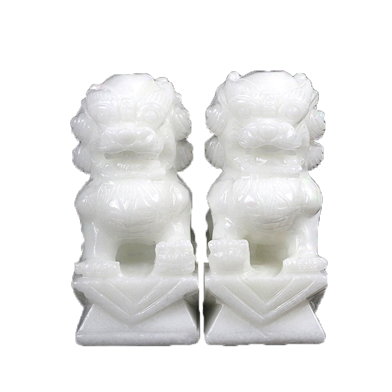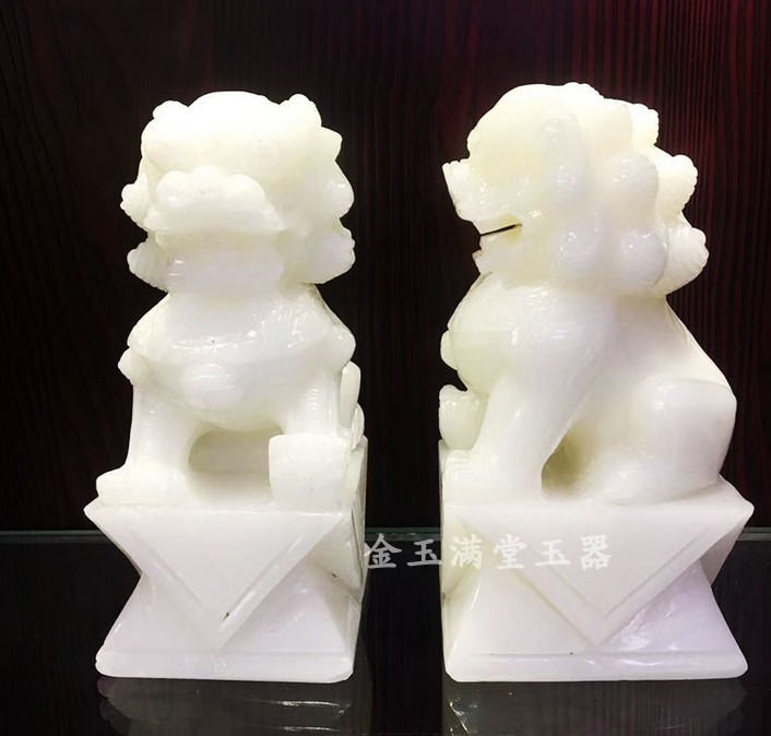 金玉满堂白玉狮子摆件一对石狮客厅大门动物大摆设桌面办公室包邮