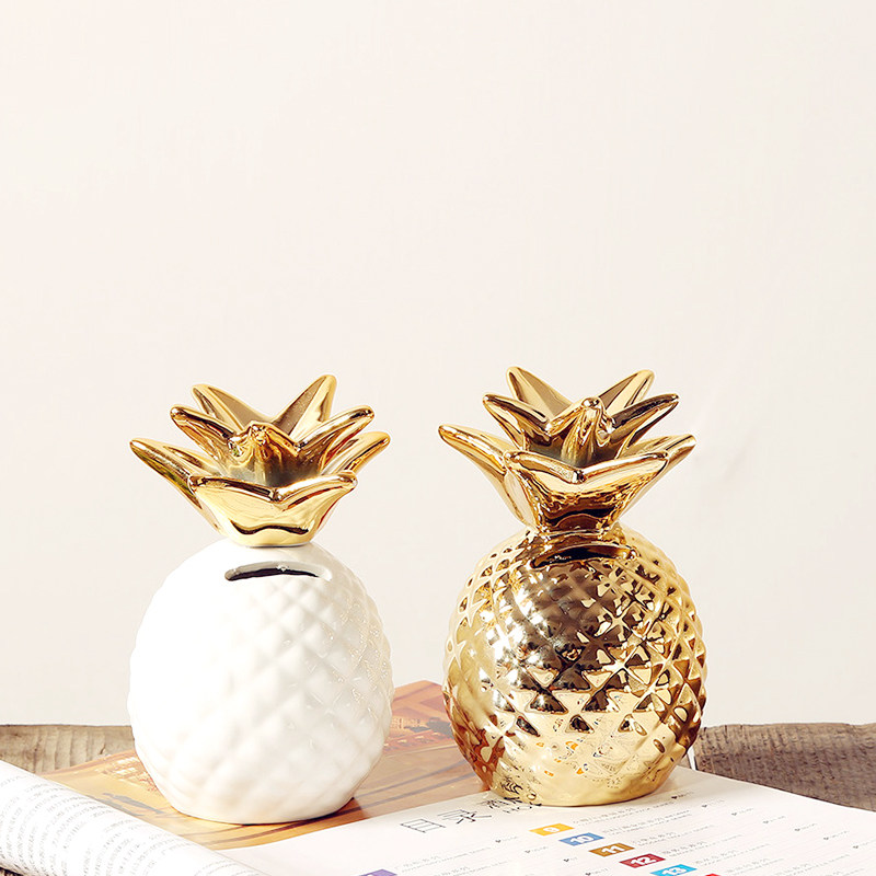 金色白色陶瓷菠萝凤梨造型储蓄罐装饰摆件储钱罐