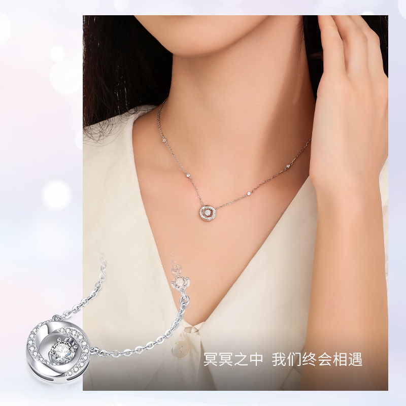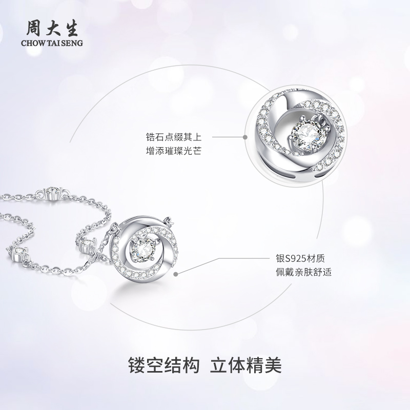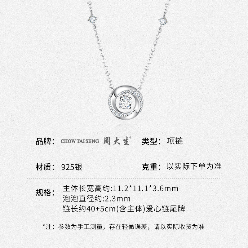 周大生银饰银项链莫比乌斯星环项链送女友老婆节日生日礼物