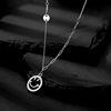 尚盈S925纯银微镶满钻笑脸圆形吊坠项链时尚百搭简约微笑锁骨链