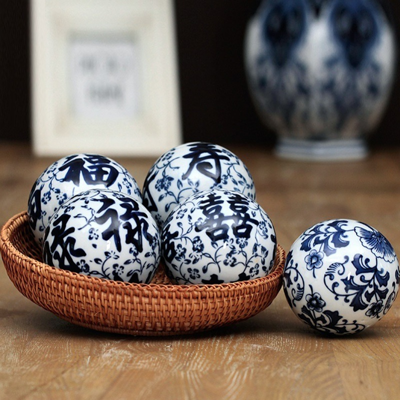 青花瓷手绘水中漂浮瓷球鱼缸摆设家居陶瓷装饰花色随机陶瓷球