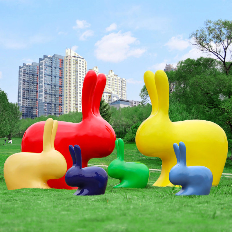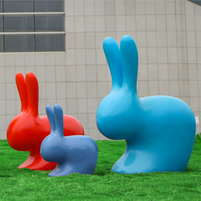 玻璃钢卡通抽象兔子动物摆件雕塑户外商场步行街幼儿园林景观装饰