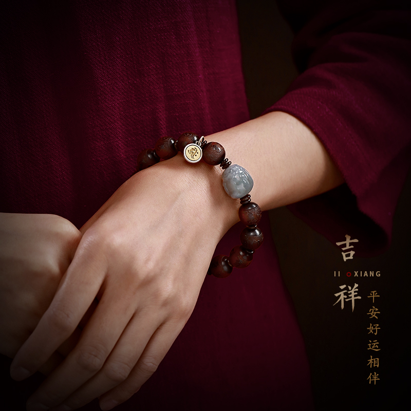 小叶紫檀手串男文玩佛珠和田玉貔貅手链本命佛盘玩转运珠念珠真品