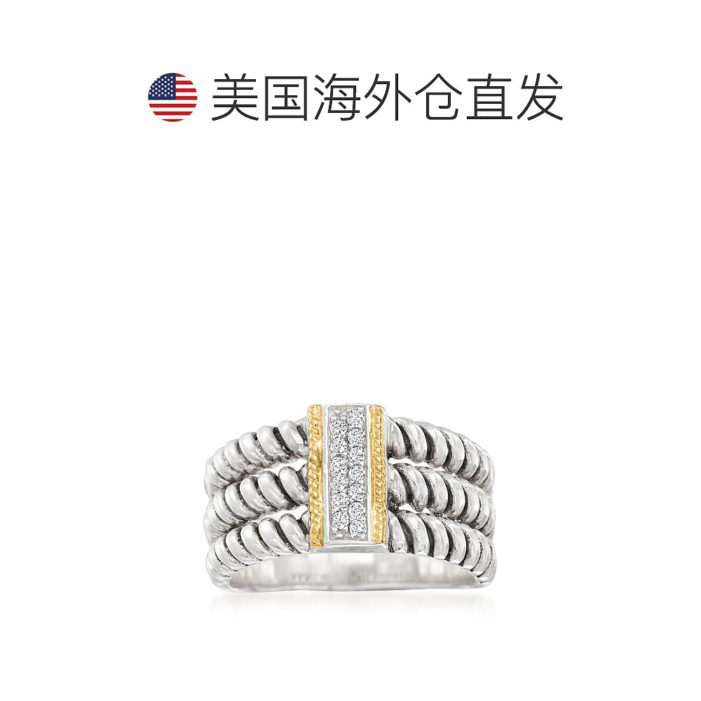 自营 Ross-Simons 925 纯银和 14 克拉黄金 CZ 3 排戒指 白色 美