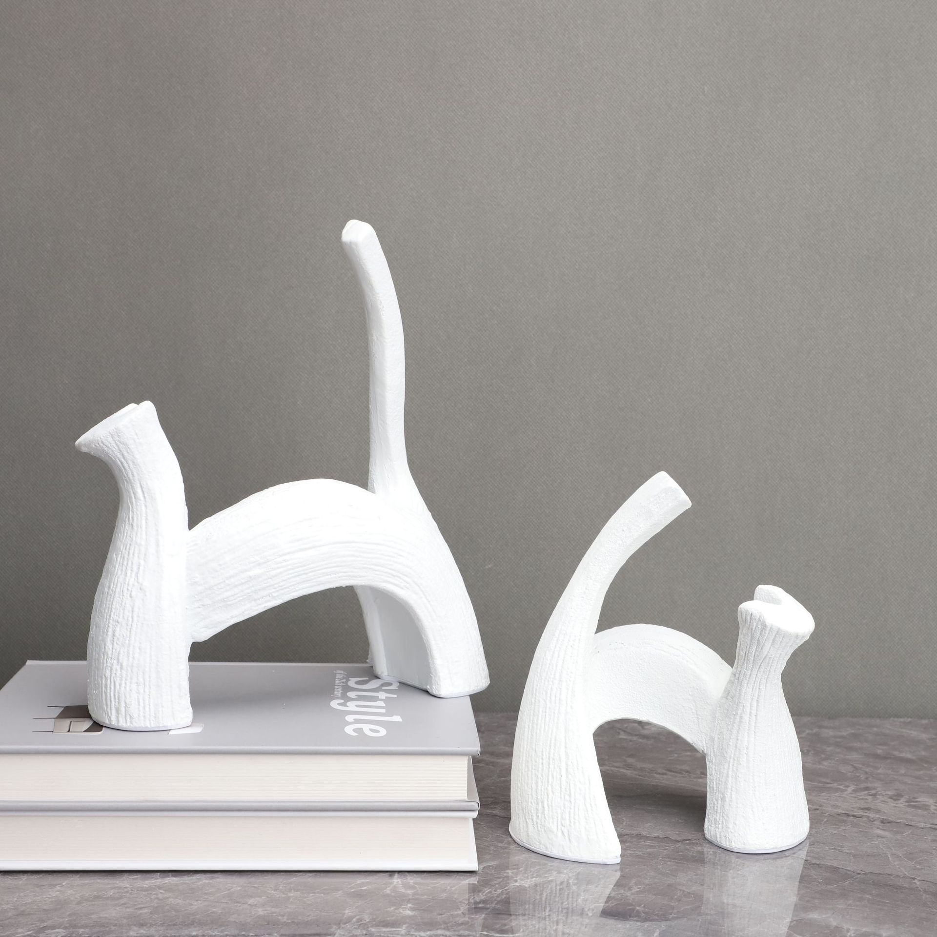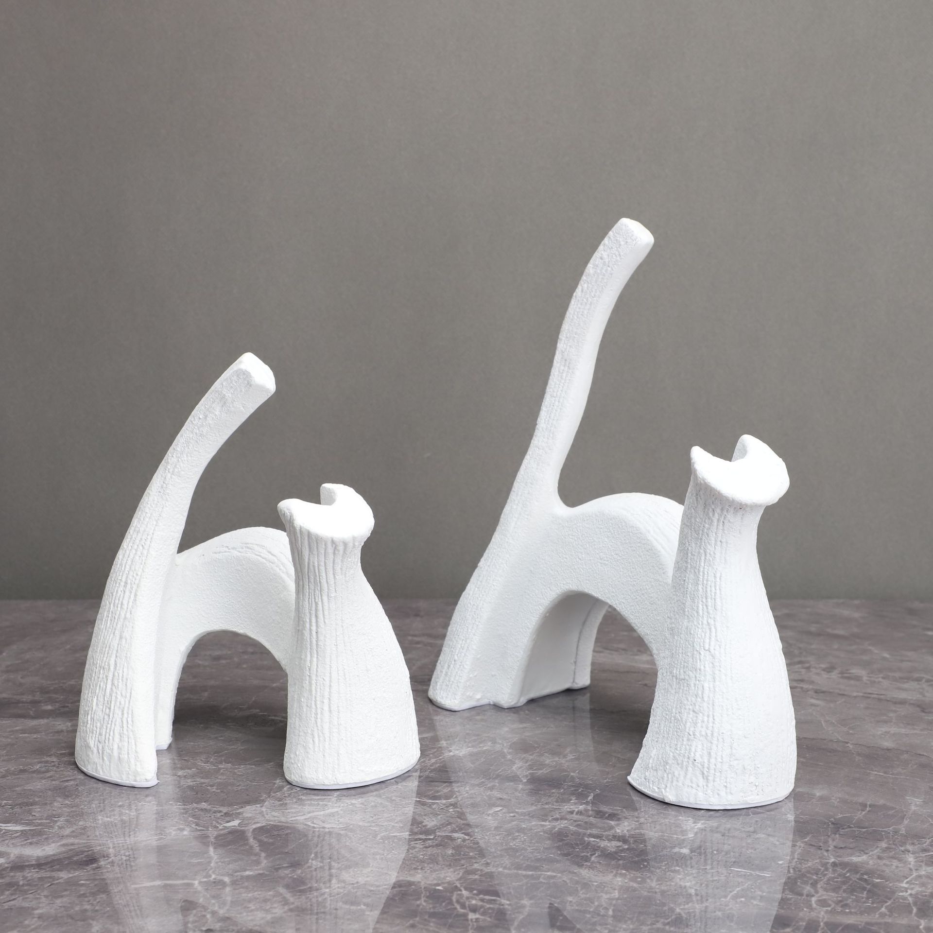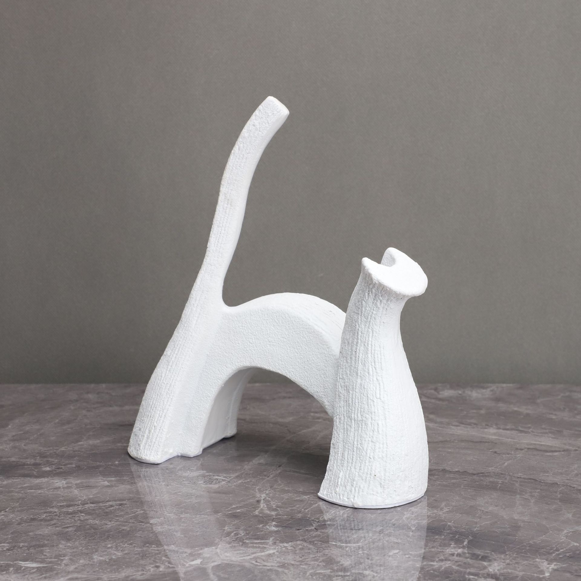 新中式白色艺术猫摆件样板房售楼部卧室书房客厅桌面玄关家居饰品