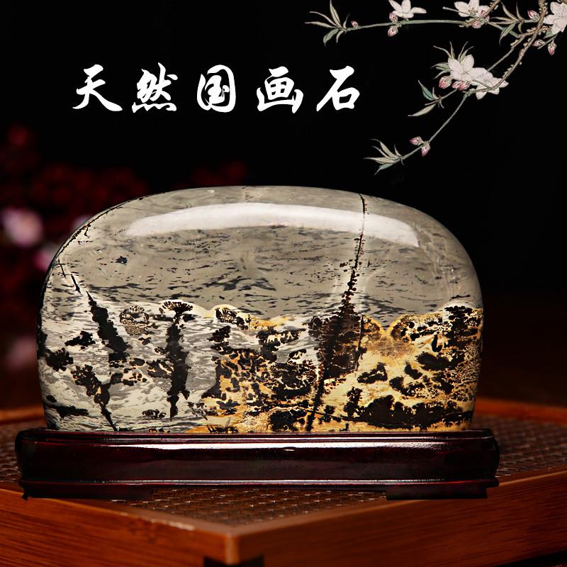 天然奇石原石国画石靠山石办公室观赏石桌面工艺品红色长方形摆件