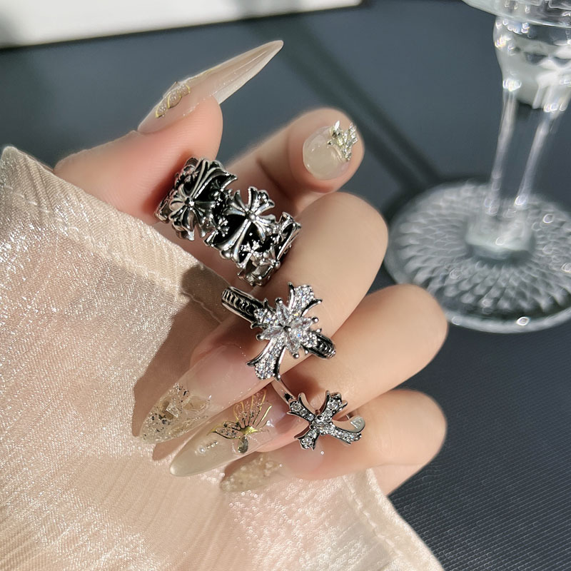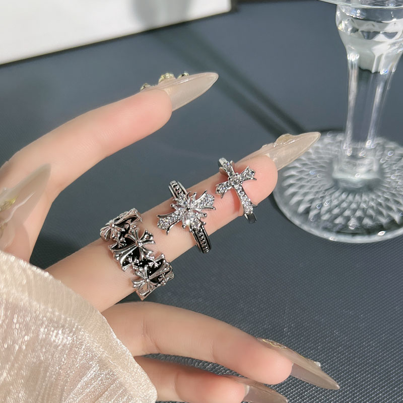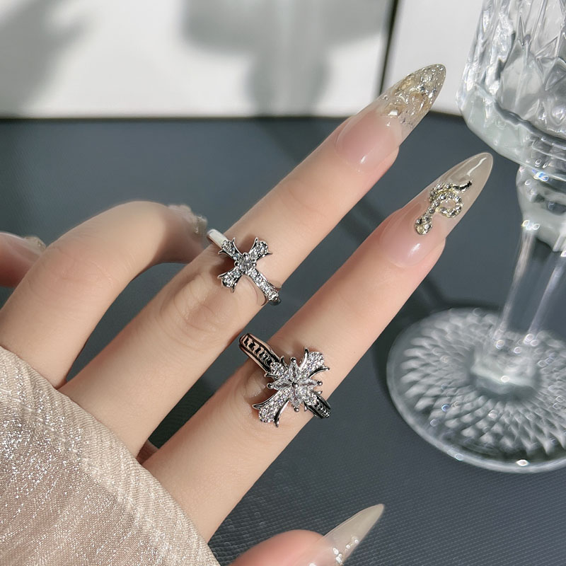 小众设计感个性潮搭十字架时尚开口戒指女中性风鸢尾花轻奢食指戒
