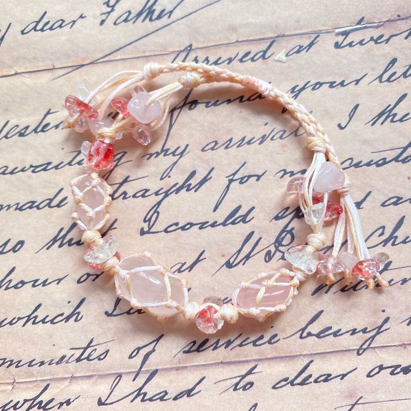 不规则手绳macrame手工编织天然石头水晶原石碎石手链蓝色紫色