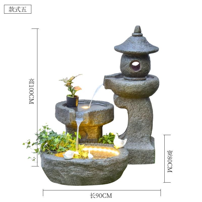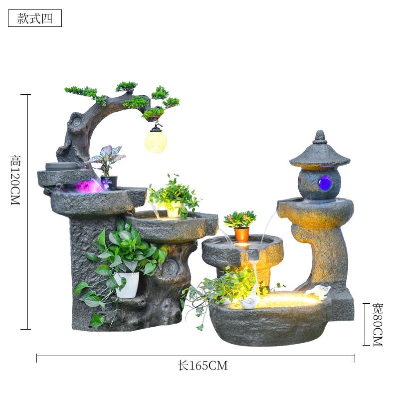 新中式轻奢迎客松假n山景观流水落地循环水喷泉客厅办公室摆件