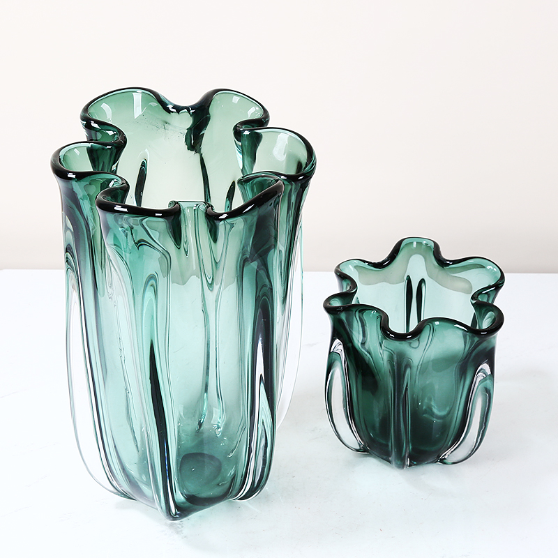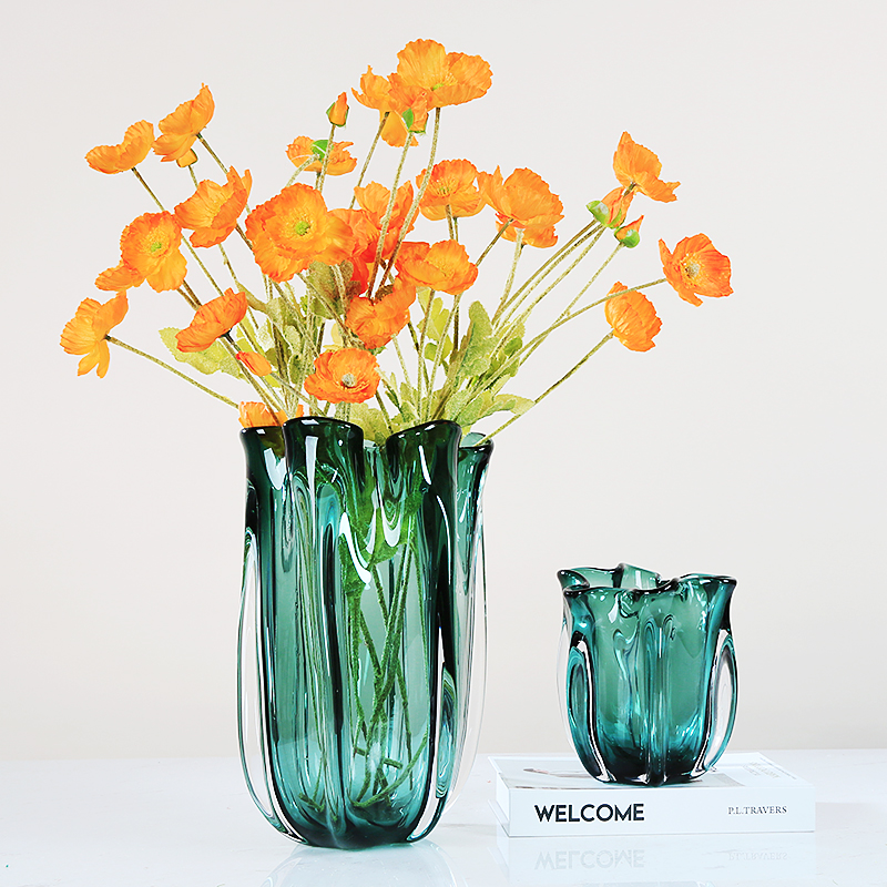 现代轻奢绿色琉璃花瓶摆件简w约客厅餐桌样板房花器插花玻璃软装