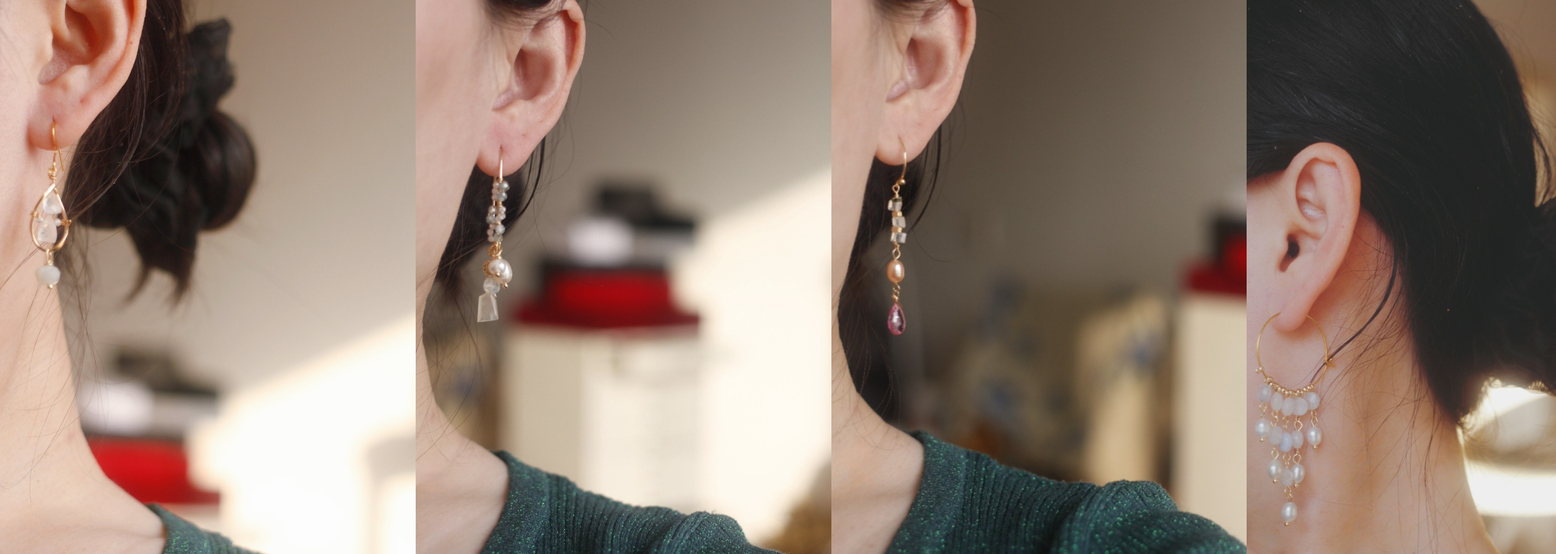 月光石水晶珍珠六月生辰石14k包金原创设计手链agete耳环耳夹项链