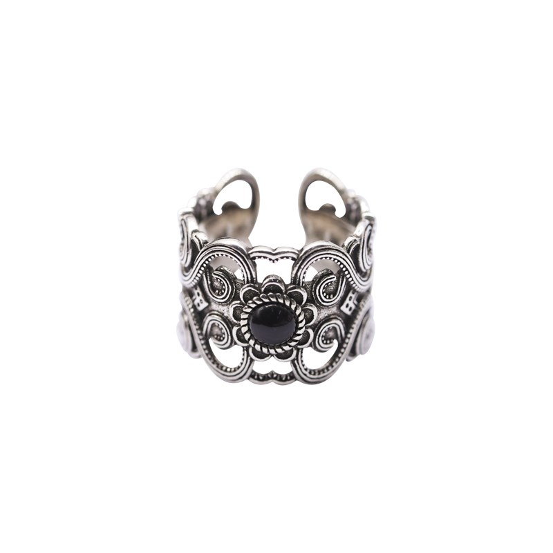 复古国潮图d腾花纹戒指s925银做旧镂空花纹宽版食指戒子开口指环