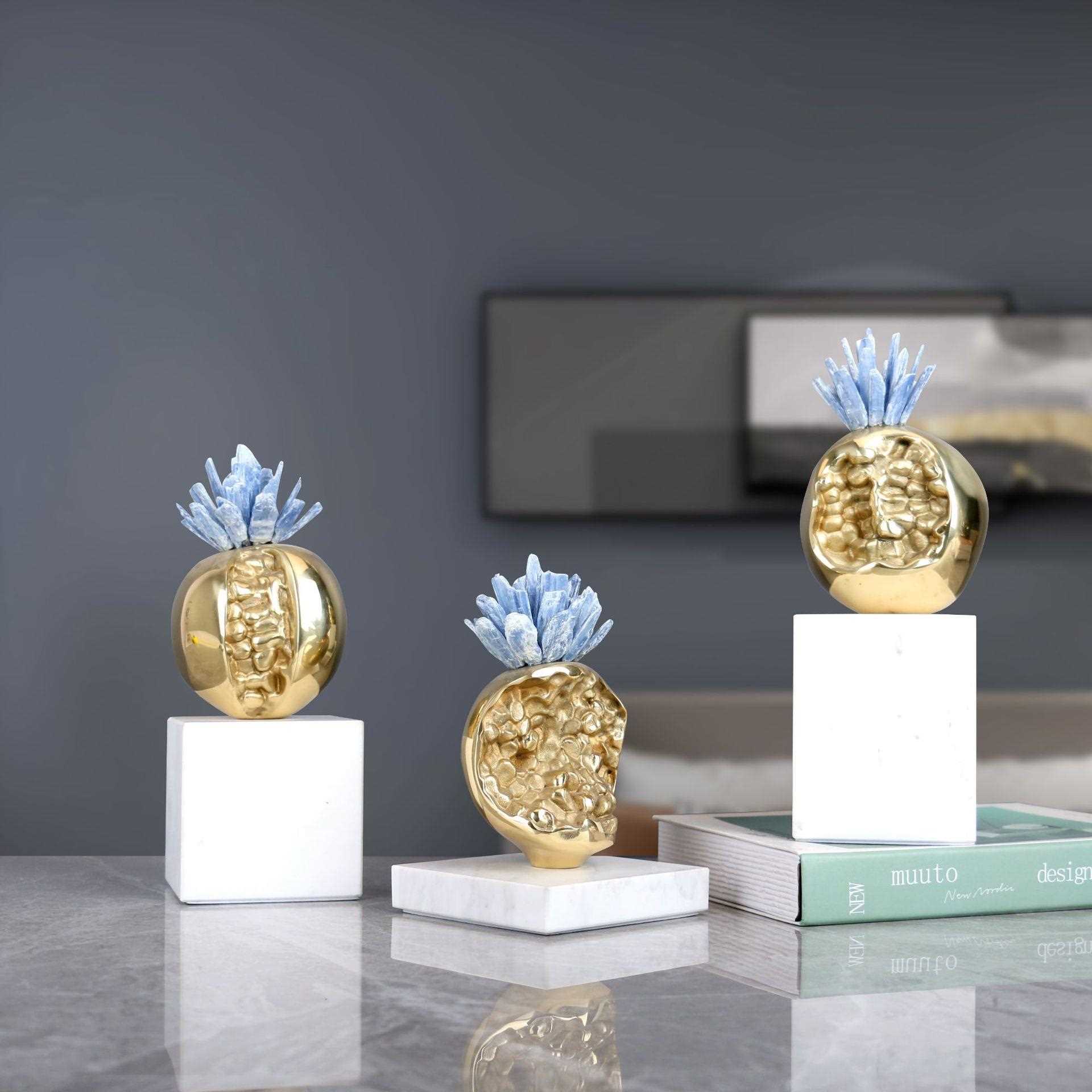 新款直销轻奢现代石榴摆件蓝色天然石客厅电视柜书房桌面家居装饰