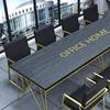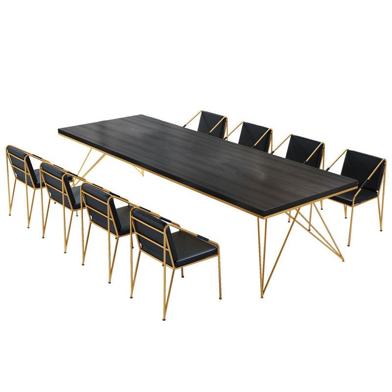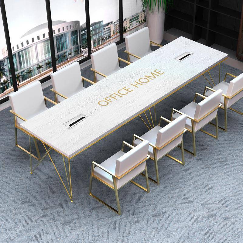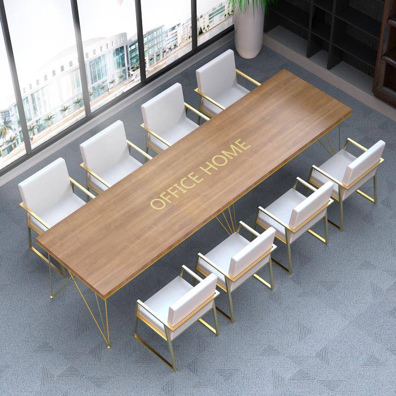 北欧实木办公桌会议室金属铁艺洽谈培训桌简约轻奢长方形会议桌椅