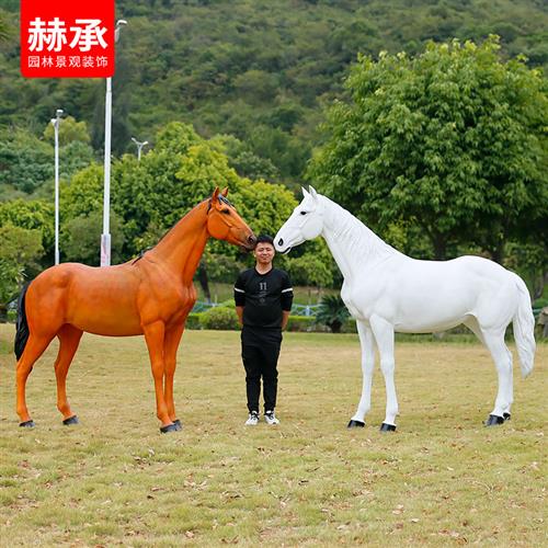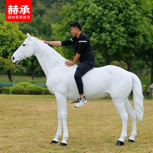 大型玻璃钢仿真马白马雕塑花园庭院美陈户外园林景观动物装饰摆件