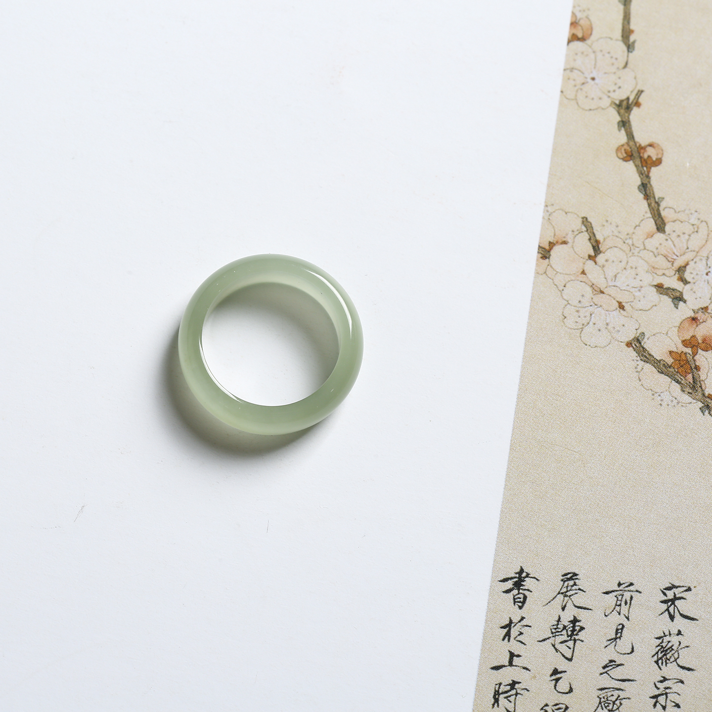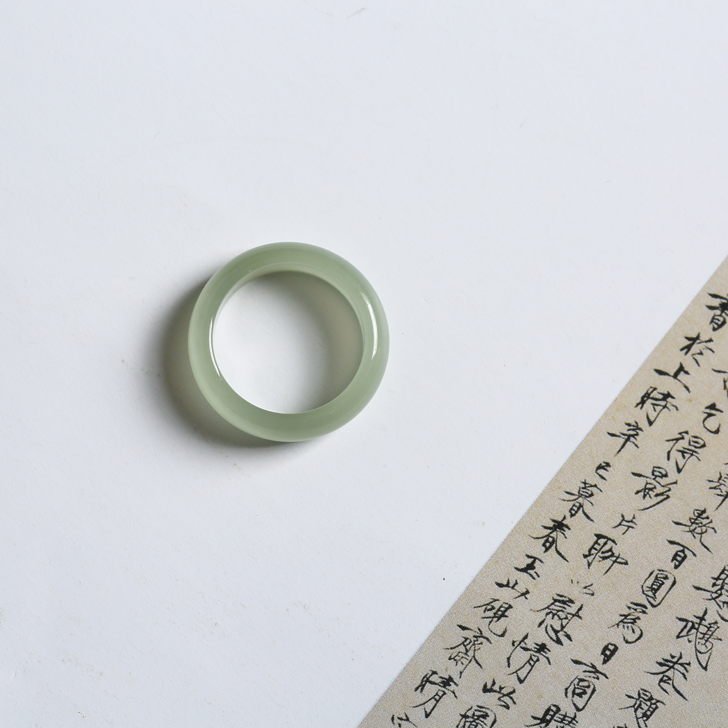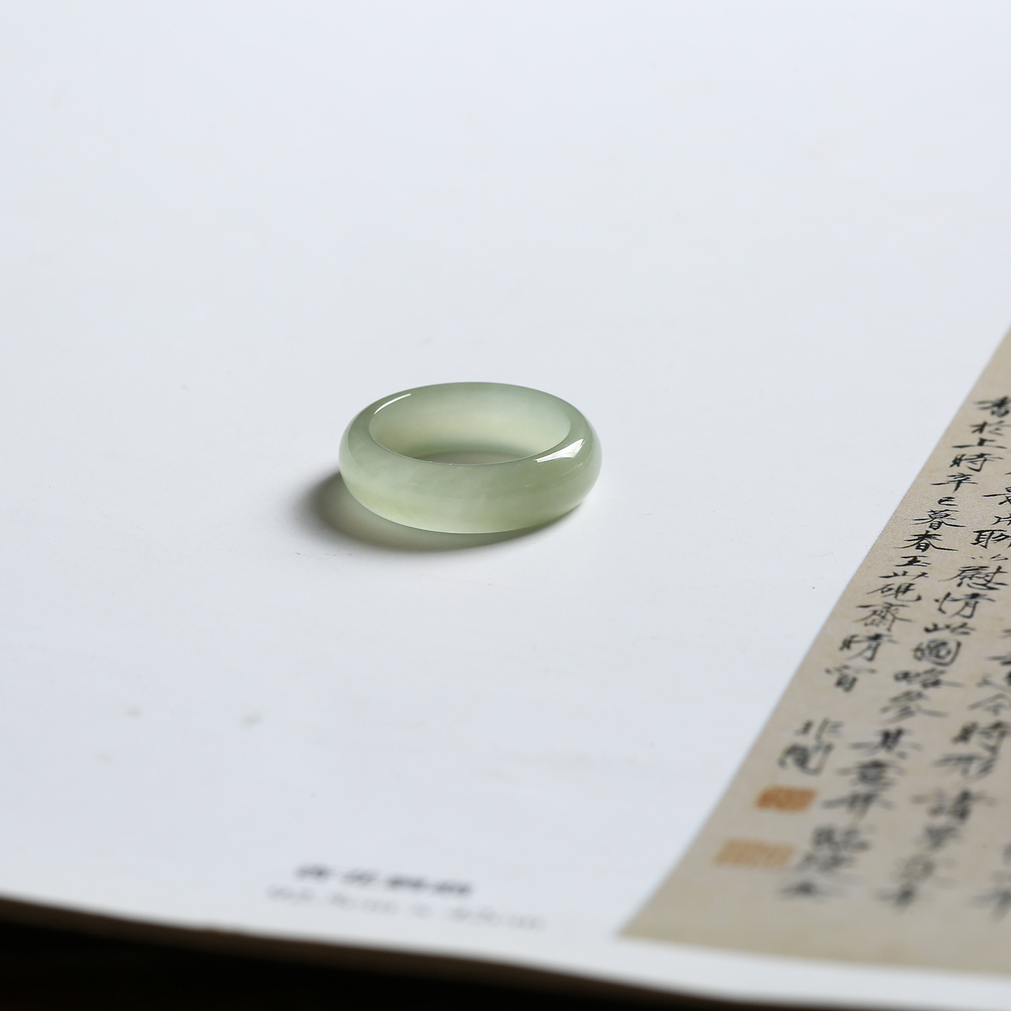 14号戒指 和田玉晴水青白泥鳅背圆弧素圈指环 X74