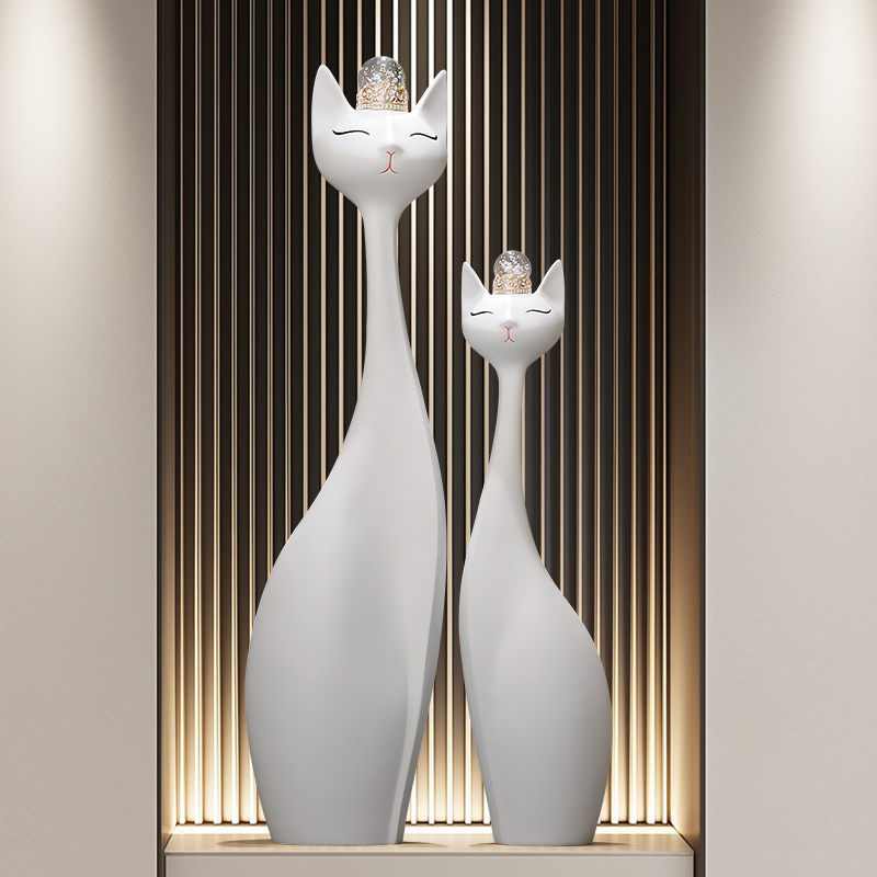 招财猫摆件进门入户玄关装饰品简约奢轻客厅长大旁竖号电视柜高档