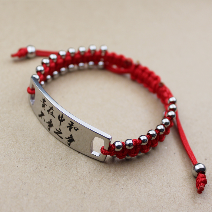 弧形钛钢手链手环送男女朋友玉线手绳配钢珠刻字防走失姓名订制