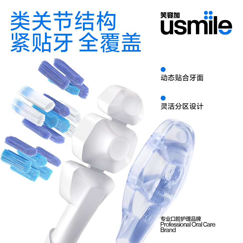 笑容加usmile电动牙刷头升级缓震亮白类关节成人替换刷头软毛清洁