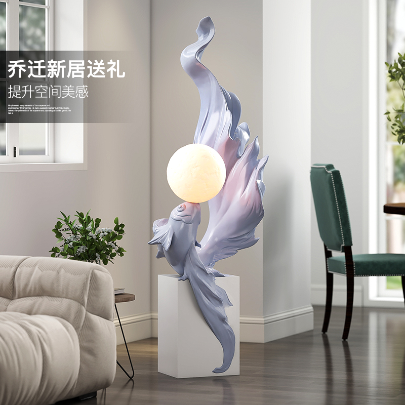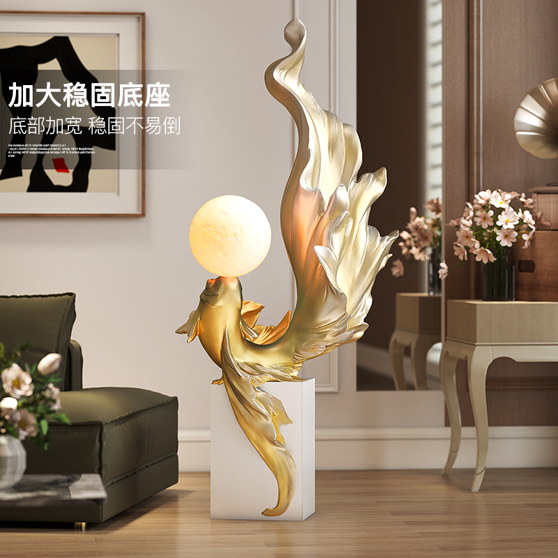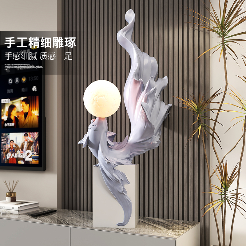 轻奢锦鲤落地摆件客厅电视柜旁氛围灯装饰品年年有余乔迁新居礼品