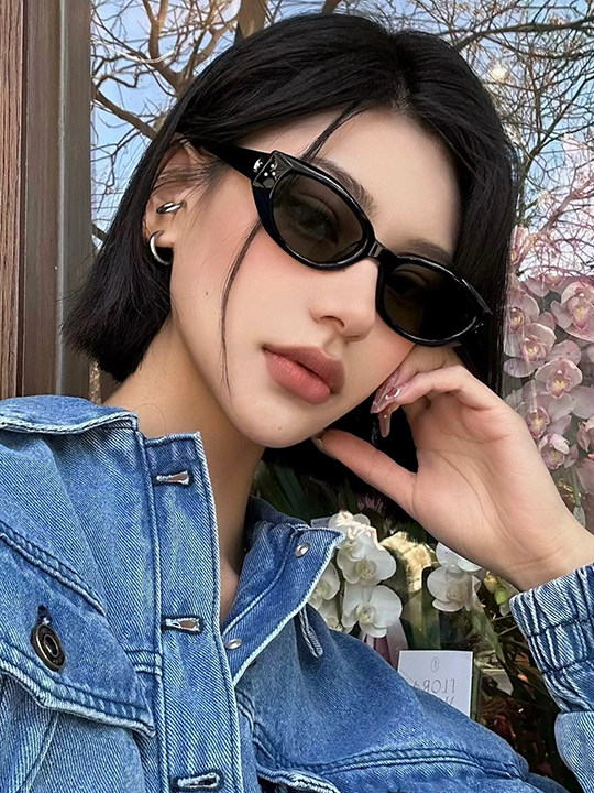 猫眼墨镜女2025新款高级复古gm眼镜方圆脸窄框太阳镜镜防紫外线