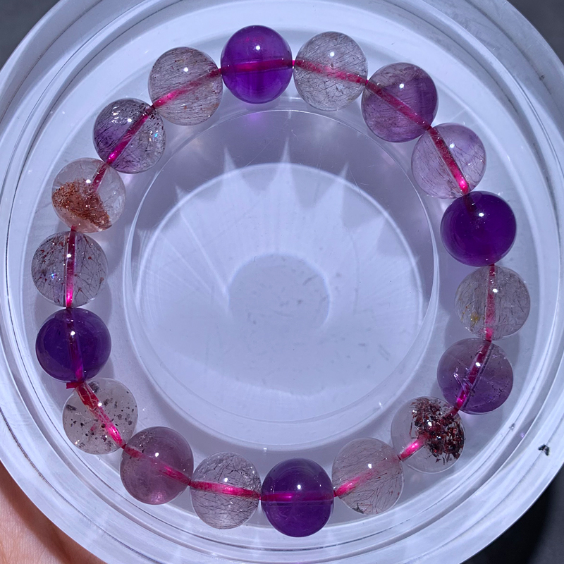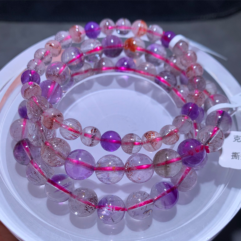 天然三轮骨干超七手链单圈黑加仑紫发晶情侣手串一物一图送礼物女
