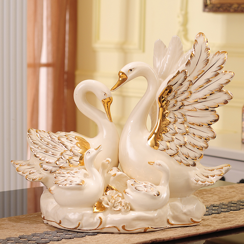 陶瓷创意家居酒柜客厅电视柜装饰品天鹅摆件新婚结婚礼物送新人
