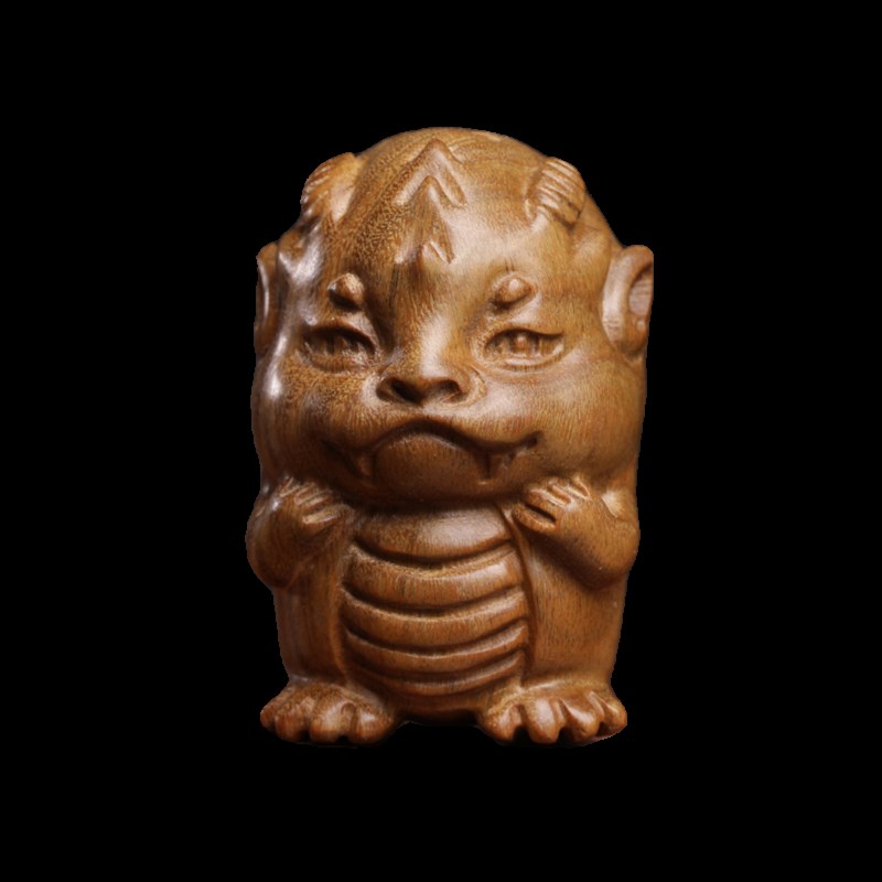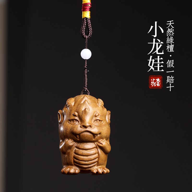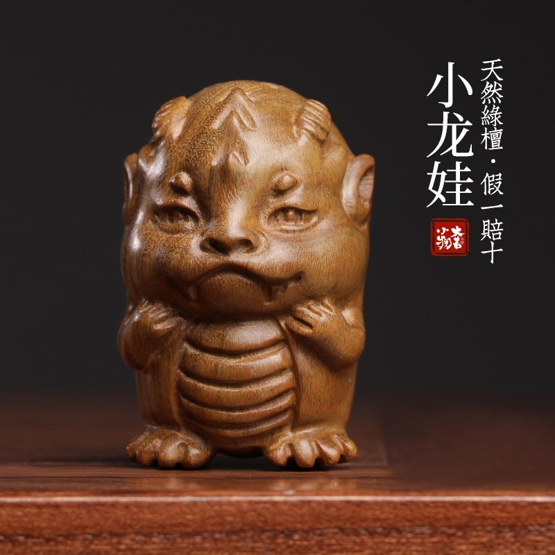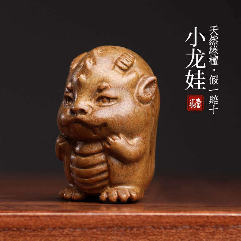 现货速发绿檀木可爱小龙娃生肖龙年摆件挂件文玩手把创意工艺礼品
