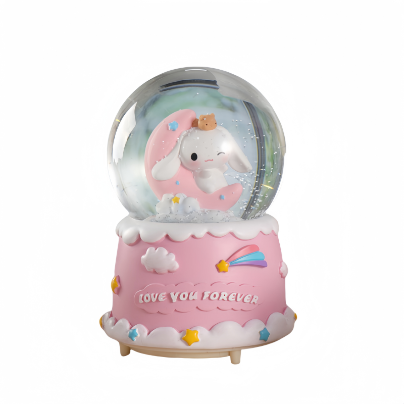 玉桂狗发光水晶球城堡自动飘雪大耳狗八音盒礼品情人节生日礼物