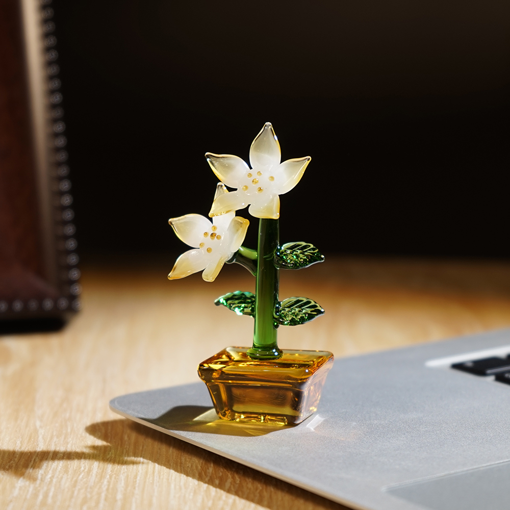 迷你琉璃花朵小摆件创意手工玻璃向日葵盆栽办公室桌面装饰工艺品