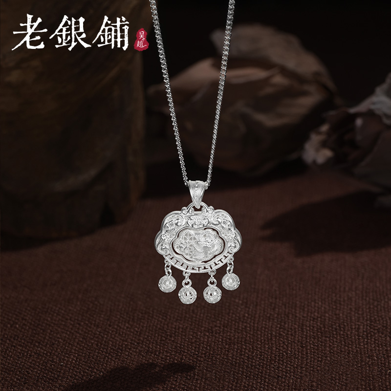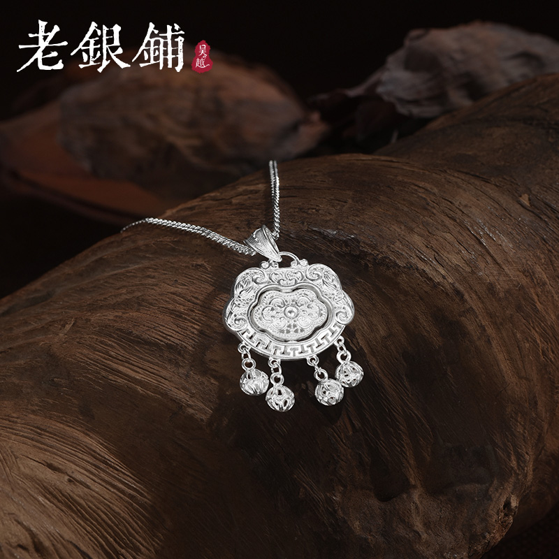 吴越老银铺足银瑞莲瑶吊坠平安锁项链花丝高级复古百搭新中式轻奢