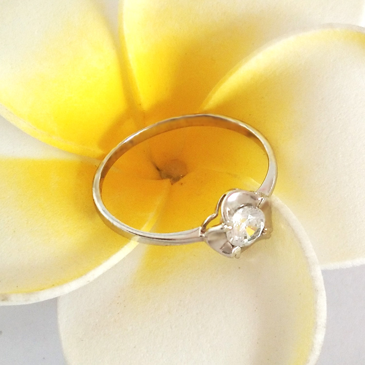 乖巧可爱漂亮花朵镶嵌锆钻女款925纯银镀金戒指12号指环
