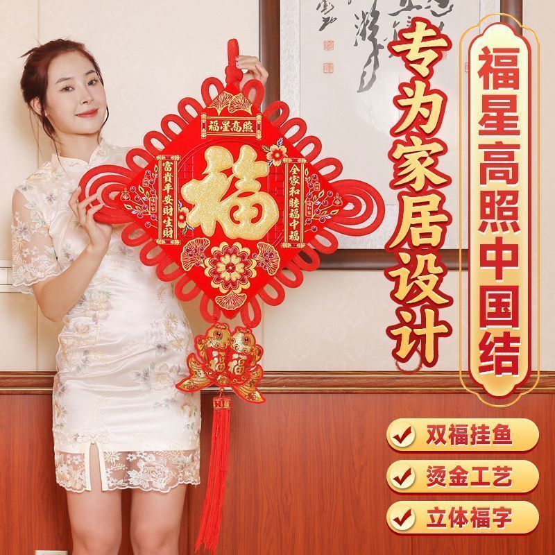 手工编织大红中国结喜庆金福福字门双面客厅玄关高档2025新款挂件